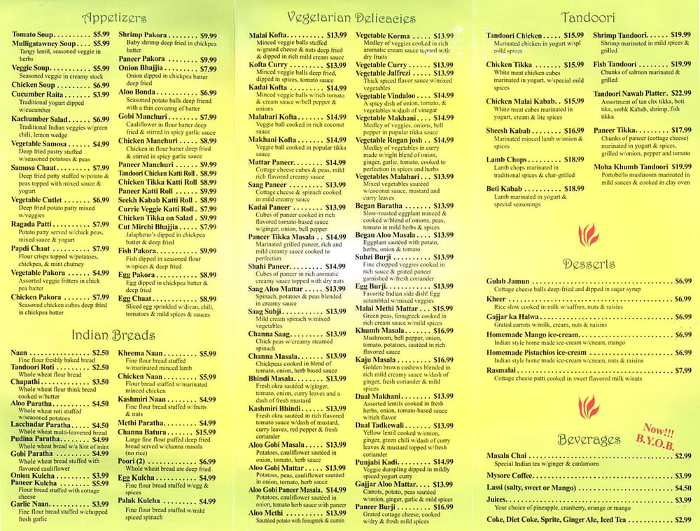 - Appetizers: Start your culinary journey with the deep-fried Vegetable Samosa or the aromatic Mulligatawny Soup, both embodying authentic Indian flavors.